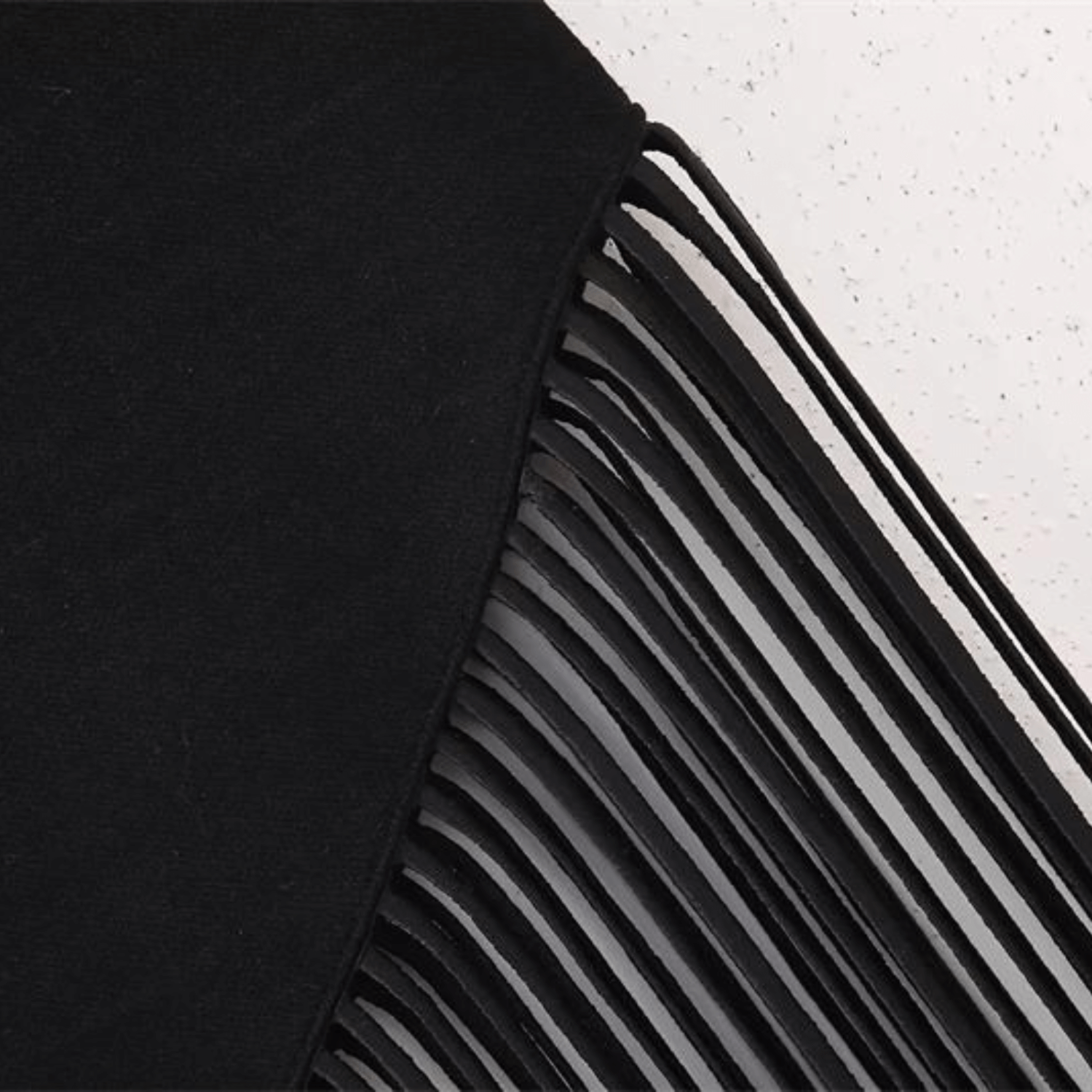 Blusa tomara que caia com franjas longas assimétricas. Tecido liso e firme. Acabamento com costura reforçada.