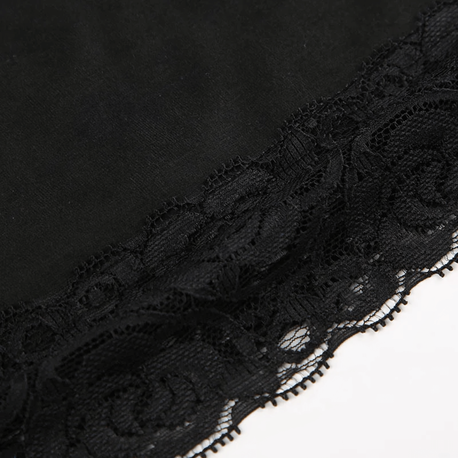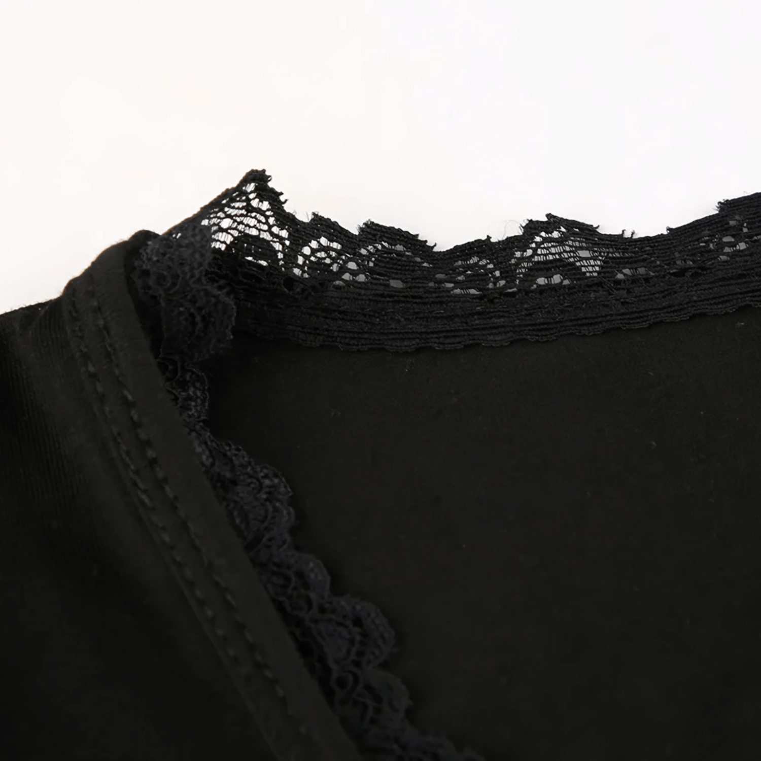Camiseta ajustada de manga longa com decote arredondado. Detalhes em renda floral no decote, punhos e barra. Tecido macio e modelagem estruturada.