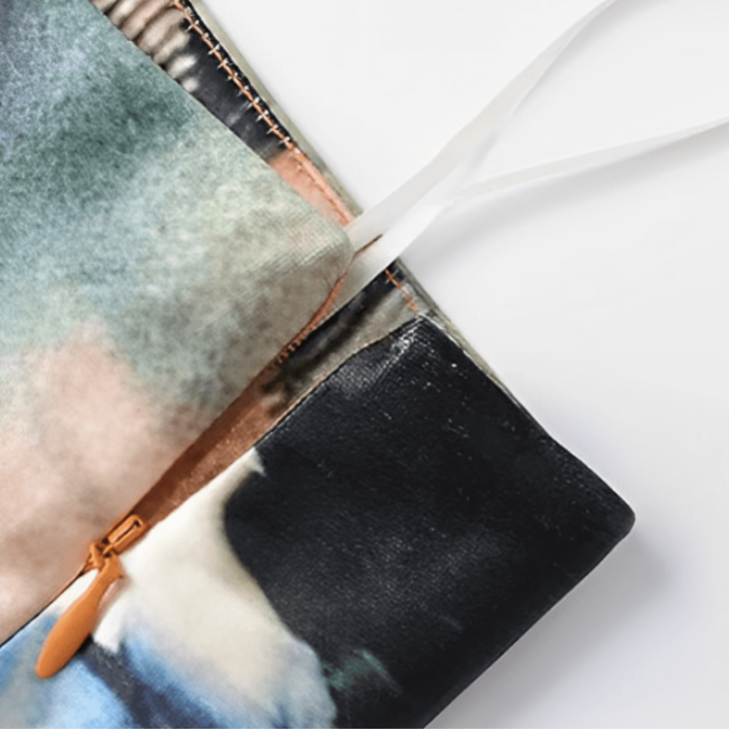 Saia curta de cintura alta com estampa artística em efeito de movimento. Ajustável ao corpo com fechamento lateral em zíper invisível. Acabamento brilhante e costuras reforçadas.